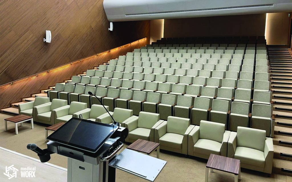 The podium has been equipped with advanced technological systems to ensure a high-quality experience during lectures, conferences, and events.