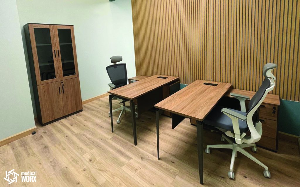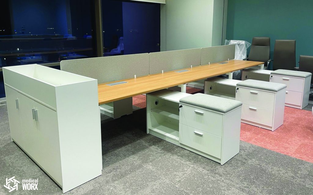 The administrative area has been equipped with smart workstations designed to optimize space utilization and improve workflow efficiency.