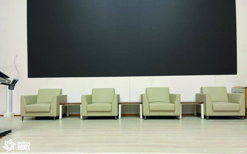 تم تأثيث مكاتب الإدارة بأطقم أثاث خشبية فاخرة تجمع بين الأناقة والعملية، مدعومة بكراسي طبية مريحة توفر دعماً كاملاً للعمود الفقري خلال ساعات العمل الطويلة.